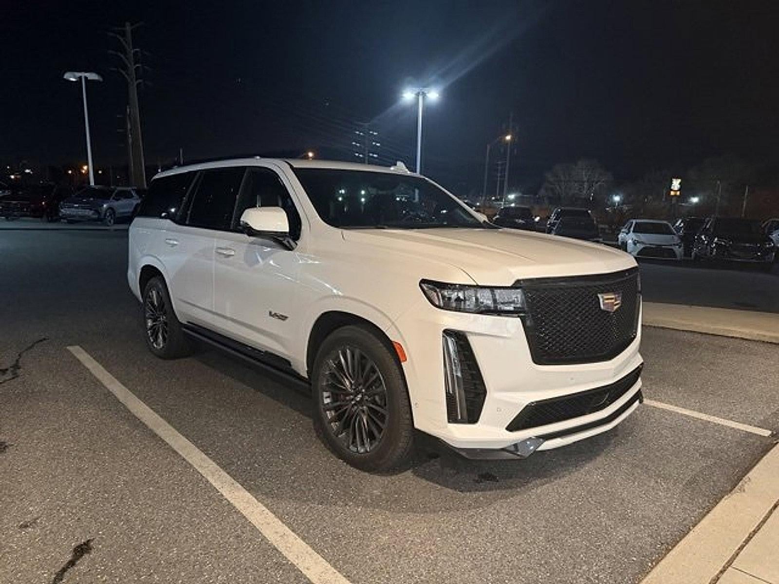 Recent Arrival! CARFAX One-Owner. Clean CARFAX. Certified. Crystal White Tricoat 2023 Cadillac Escalade V-Series AWD, Jet Black Leather.